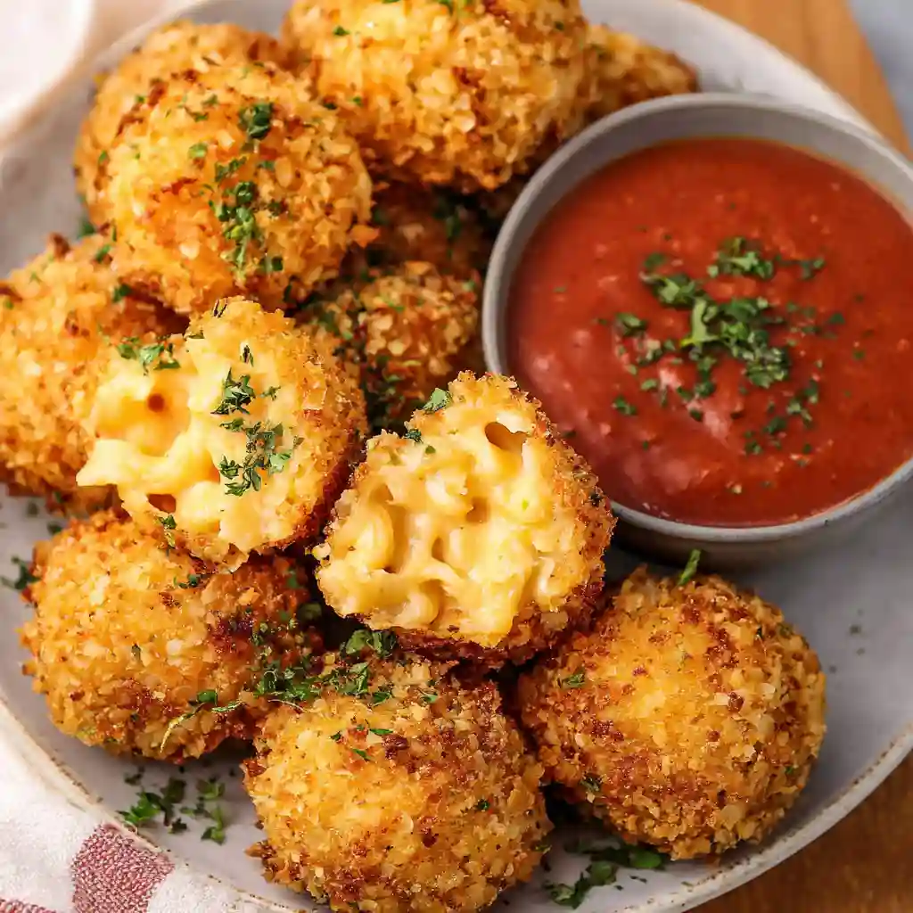 - Air fry: ➜ Place mac and cheese balls in a single layer (don’t overcrowd). Air fry for 8–10 minutes, turning halfway, until golden brown and crispy.