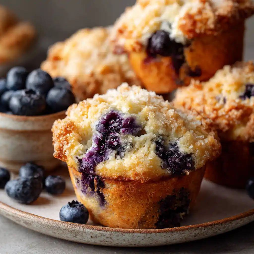 These Bakery Style Blueberry Muffins are everything you love about café muffins — tall, moist, and full of fresh or frozen blueberries. With a tender crumb and crunchy golden tops, they’re perfect for breakfast, brunch, or an afternoon treat.