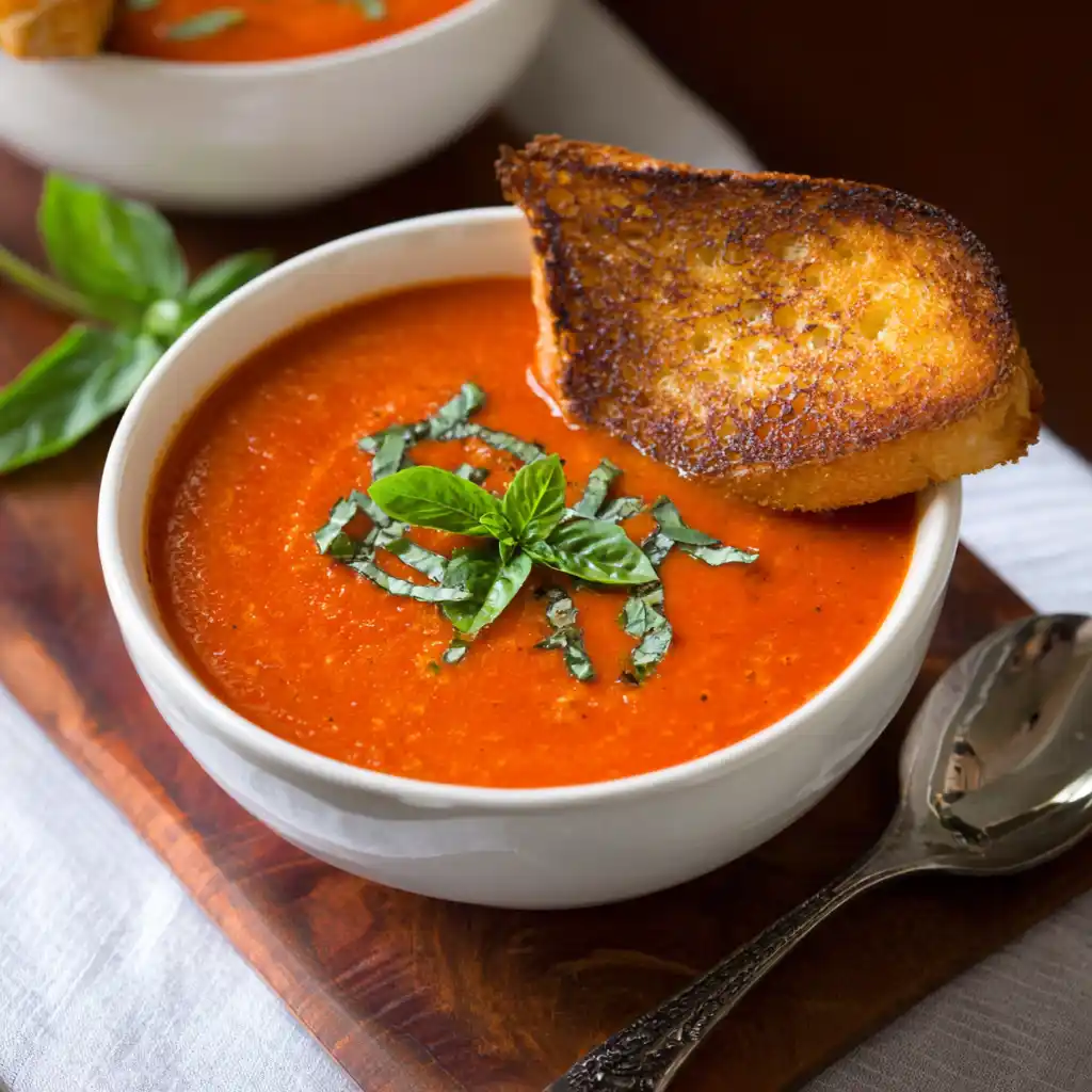 This Roasted Tomato Basil Soup is the ultimate comfort food — warm, creamy, and bursting with the flavor of slow-roasted tomatoes and fresh basil. Made from simple, wholesome ingredients, this soup is naturally vegetarian, perfect for cozy nights, or paired with a grilled cheese sandwich for the classic “soup and sandwich” combo. Whether you’re craving something nourishing or looking for an easy weeknight meal, this recipe delivers comfort in every spoonful.