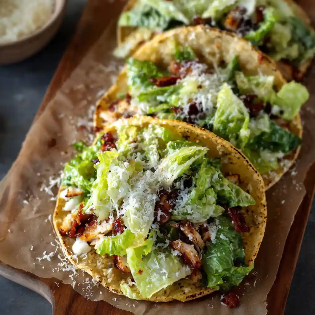 Whether you’re planning a fun family dinner, game-day snack, or meal-prep lunch, these tacos deliver restaurant-level flavor with minimal effort. Think golden, garlicky chicken topped with crisp romaine, Parmesan, and zesty Caesar dressing — the perfect combination of freshness and comfort.